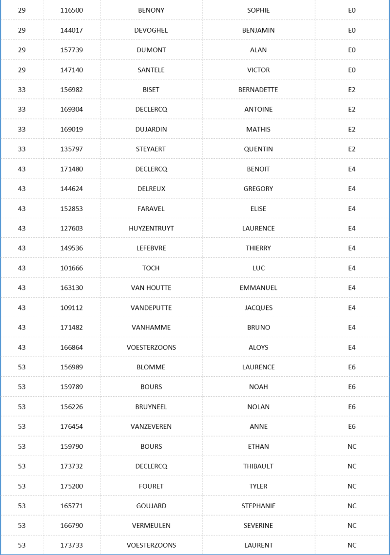 Liste de force 2025/2026 (Messieurs)