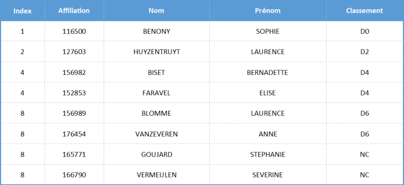 Liste de force 2025/2026 (Dames)